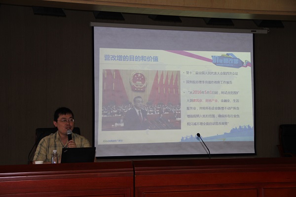 本次培訓的主題是“建筑行業(yè)‘營改增’的應對及挑戰(zhàn)”,邀請的是廣聯(lián)達軟件的高級培訓講師孫老師。 培訓期間,孫老師對財政部、國家稅務總局的《關于全面推開營業(yè)稅改征增值稅試點的通知》(財稅〔2016〕36號)文件進行了全面的解讀,闡述了兩類身份、兩種計稅方法以及“三流合一”等“營改增”后的新概念,并進一步分析了“營改增”后安徽省工程計價涉稅調(diào)整的有關情況。最后,他結合“營改增”對工程造價的影響為企業(yè)提出了應對的具體建議。