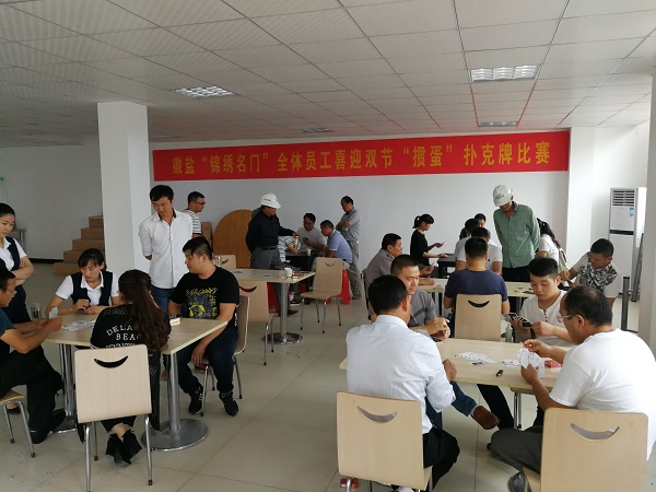 為迎接即將到來的中秋和國慶佳節,同時加強公司各部門之間的聯系,方便日常工作的順利開展,活躍公司內部員工工作氣氛,激發公司員工的工作熱情。9月21日,“徽鹽?錦繡名門”項目公司食堂熱鬧非凡,公司各部門員工共同參加喜迎雙節“摜蛋”撲克牌比賽。
