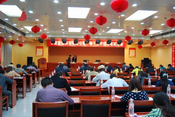 4月26日下午,安徽鹽業(yè)典當(dāng)有限公司(籌)經(jīng)營(yíng)管理人員公開招聘筆試在鹽業(yè)大廈23樓會(huì)議室舉行。本次招聘職位為公司總經(jīng)理1名、財(cái)務(wù)部經(jīng)理1名、客戶經(jīng)理3名。招聘公告通過《安徽日?qǐng)?bào)》、《新安晚報(bào)》、《合肥晚報(bào)》、新安人才網(wǎng)等媒體發(fā)布后,社會(huì)反響較為強(qiáng)烈,參與人數(shù)眾多。經(jīng)資格審查后,來自省內(nèi)的59名中青年人才參加了考試,考聘比例為11.2:1,個(gè)別職位考聘比例達(dá)到21:1。
